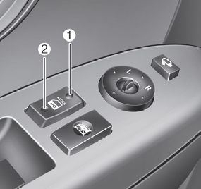 • When pressing the front portion (1) of the switch, all vehicle doors will lock.