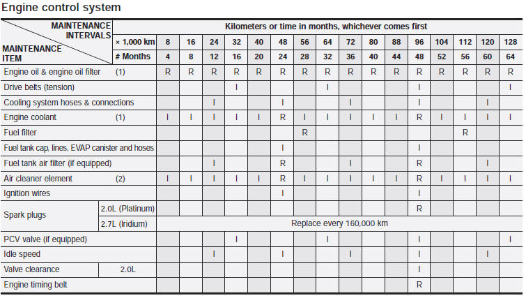 (2) More frequent maintenance is required if driving under dusty conditions.